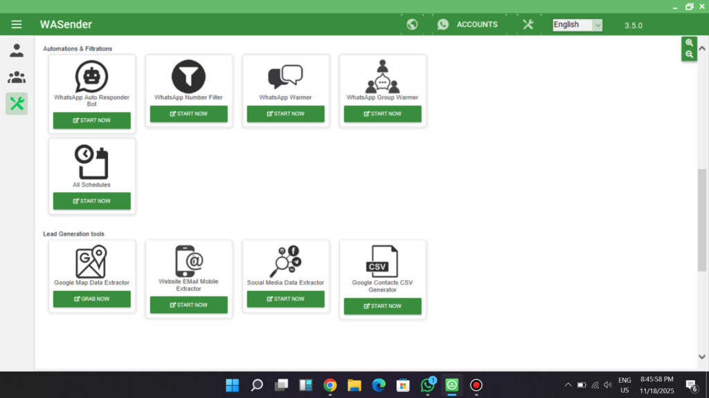 Boost Your Bussines 10x with No. 1 Whatsapp Marketing tool. Send Bulk messages, extract Group memebers, Grab google Map data, Bulk Number saver, Whatsapp anti Ban system, Bulk messaging in group and much more